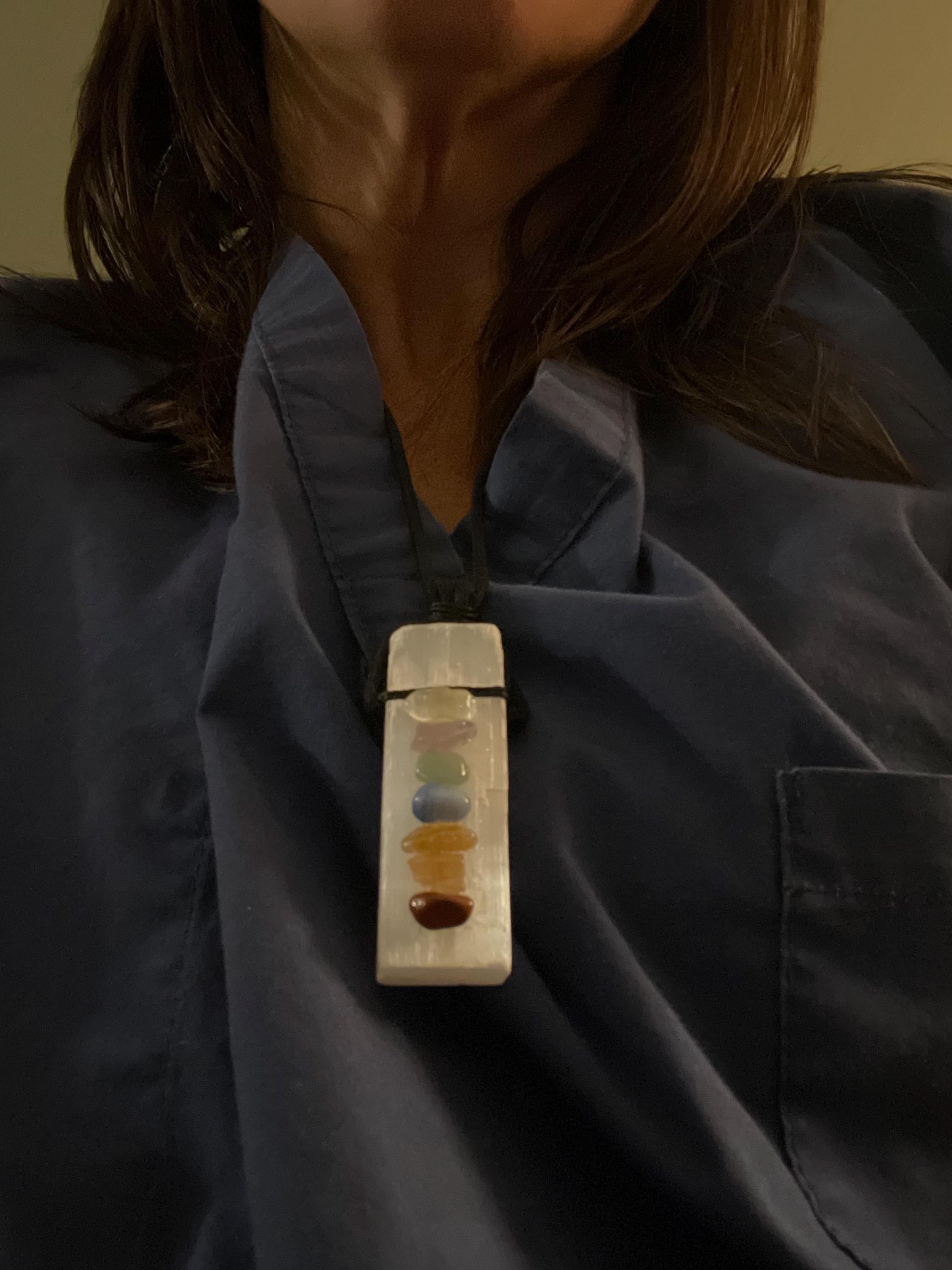 When life feels chaotic and your energy is scattered, the 7 Chakra Raw Selenite Necklace serves as a powerful reminder to realign and restore balance.